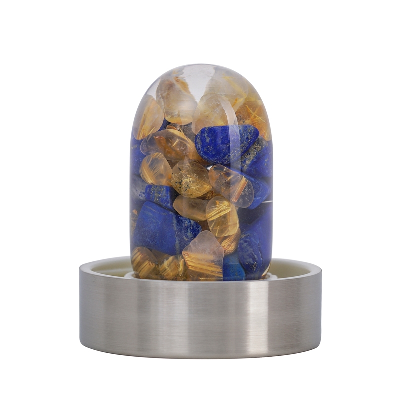 Lassen Sie sich inspirieren von der Farbintensität des tiefblauen Lapislazuli, der für Vorstellungsvermögen und Schaffenskraft steht und der einzigartigen Leuchtkraft des Rutilquarzes.